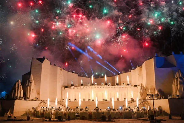 以集体点灯、烟花震撼绽放作为启动仪式,盛大的数字烟花秀,与冰火舞台铁打花表演一道炫光震撼,将现场气氛推向了高潮。